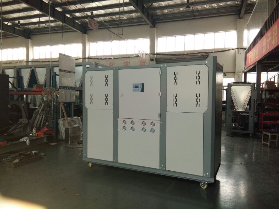水冷式工業(yè)制冷機組是通過冷卻塔以冷卻循環(huán)水為冷凝方式的控溫設(shè)備,有箱式和螺桿式。箱式單機輸出馬力從3HP~60HP,螺桿式單壓縮機輸出馬力從30HP~280HP,螺桿式雙壓縮機輸出馬力從220HP~560HP.