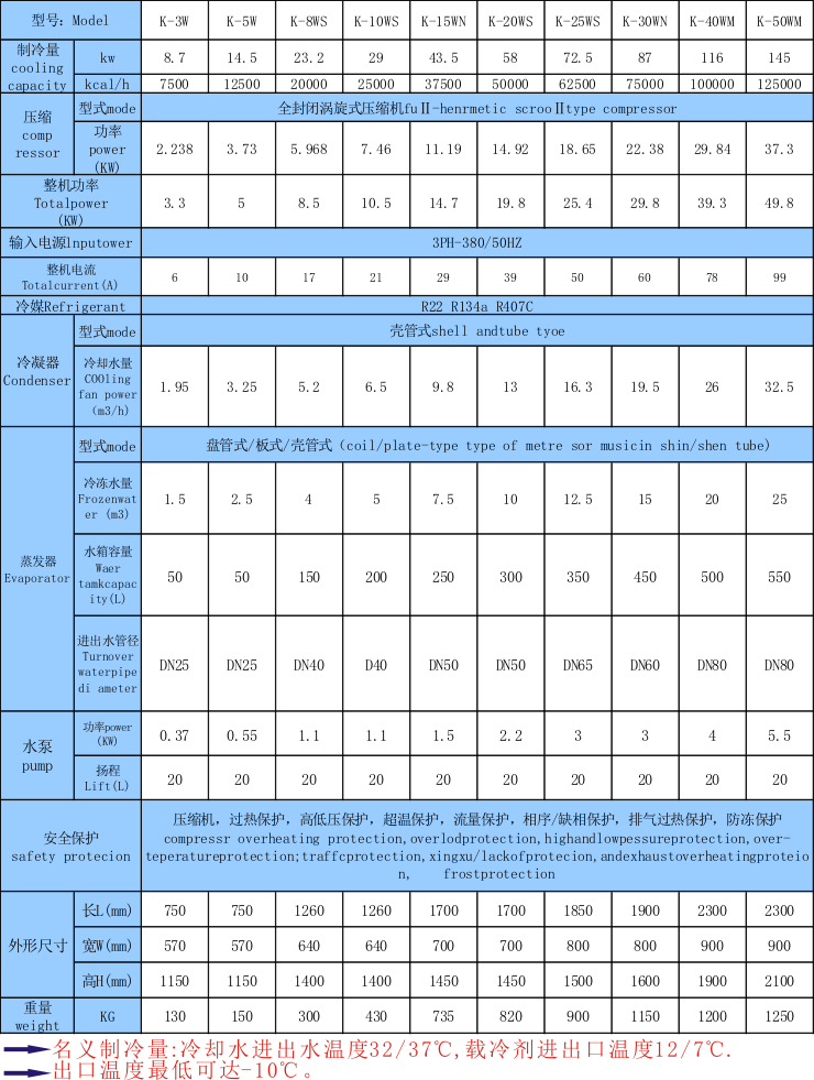 8.水冷及風(fēng)冷式規(guī)格齊全(功率:3HP-300HP,制冷量從600W至34800W)專門設(shè)有適合各行業(yè)機械設(shè)備配套之機型,可按客戶要求特別制造。