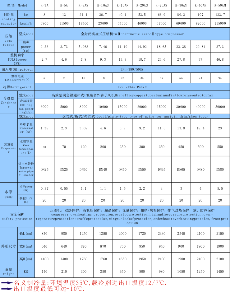 8.水冷及風(fēng)冷式規(guī)格齊全(功率:3HP-300HP,制冷量從600W至34800W)專門設(shè)有適合各行業(yè)機械設(shè)備配套之機型,可按客戶要求特別制造。
