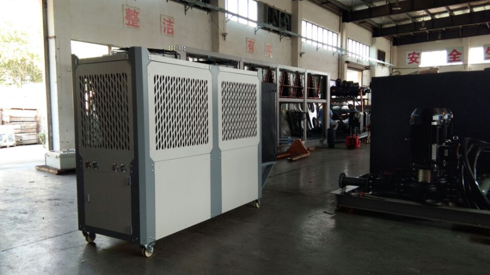 冷水機組是用于工業(yè)生產(chǎn)或?qū)嶒灂r控溫、恒溫、降溫、冷卻等的設(shè)備。冷水機組工作原理是先向機內(nèi)水箱注入一定量的水/載冷劑,通過冷水機組制冷系統(tǒng)將水/載冷劑冷卻,再由水泵將低溫冷卻水/載冷劑送入需冷卻的設(shè)備,冷水機組冷凍水/液將熱量帶走后溫度升高再回流到水箱,達(dá)到冷卻的作用。